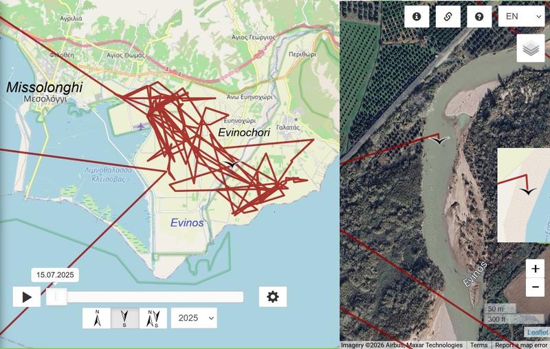 - 11.01.2026, Distance: 4424 km (+33 km) Janis searched for food in the drainage canal near Çakırören and moved to the north again